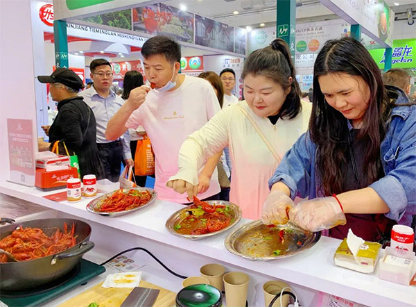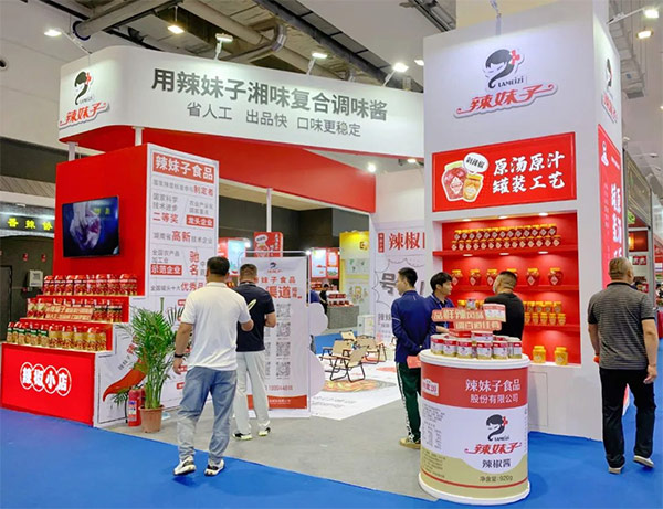 辣妹子在此次展會(huì)上,展示了辣妹子辣椒醬、菜式醬、佐餐醬等幾十款產(chǎn)品,同時(shí)用醬料烹飪了龍蝦、紫蘇牛蛙等多款具有代表性的經(jīng)典湘式菜品,色香味俱佳的美食盛宴,吸引了眾多餐飲行業(yè)廠商、嘉賓、消費(fèi)者前來(lái)品嘗和體驗(yàn)。